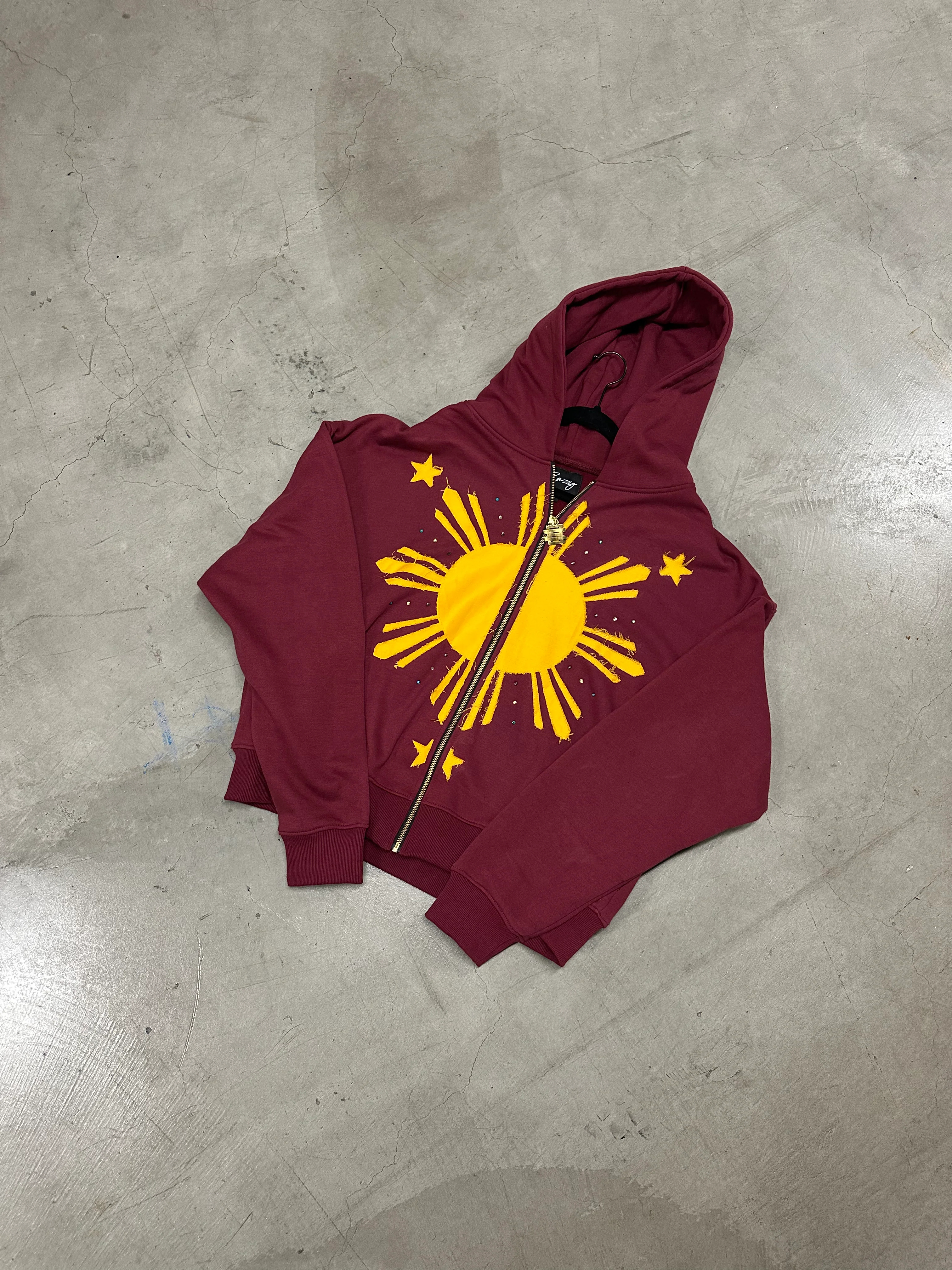 SUN GEMSTONE DISTRESSED EMBROIDERY HOODIE