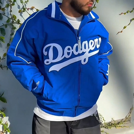 Classic Letter Logo Print Long Sleeve Baseball Jacket